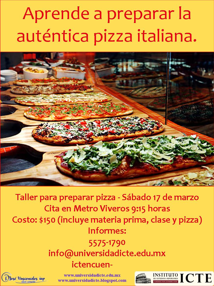 El Instituto Científico Técnico y Educativo A. C. (ICTE), en colaboración con la Fundación José Vasconcelos I. A. P. invitan al Taller para preparar Pizza que se realizará el sábado 17 de Marzo.